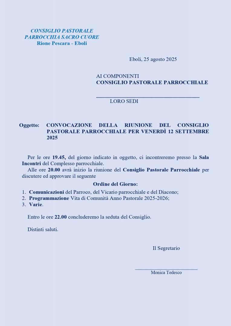 Convocazione Consiglio Pastorale