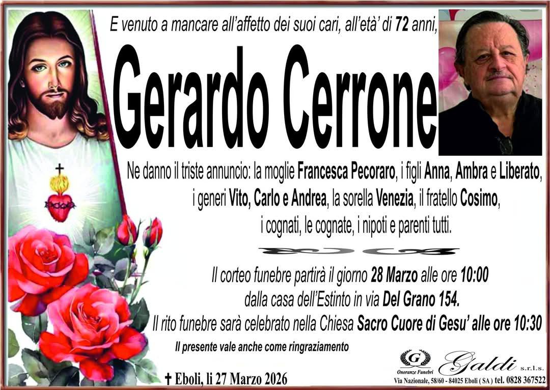28 marzo 2026 Funerale Gerardo Cerrone