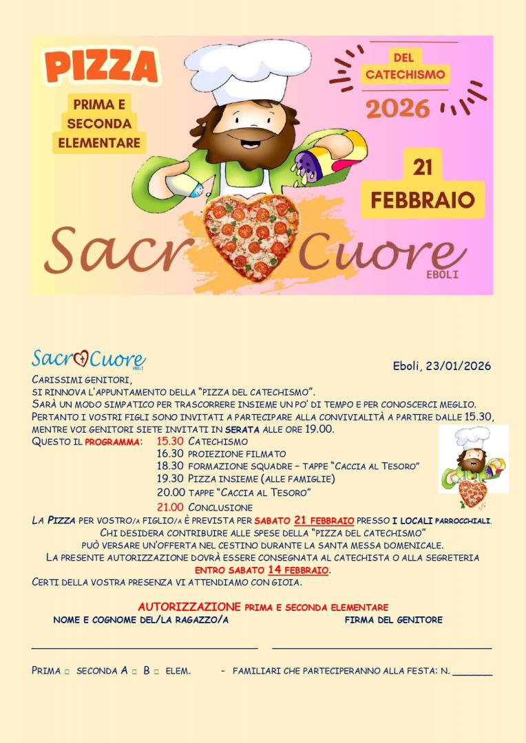 PIZZA del CATECHISMO: 21 febbraio-21 marzo 2026